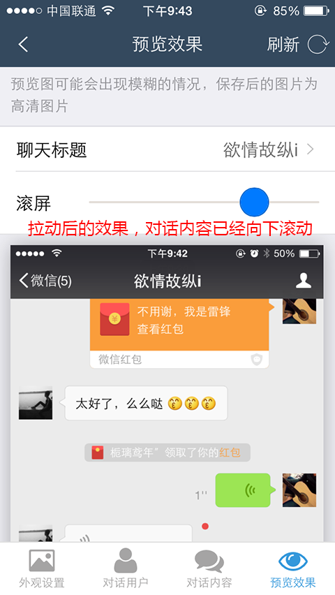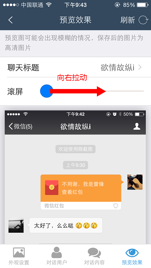 打开微信对话生成器,底部导航菜单选择“预览效果”