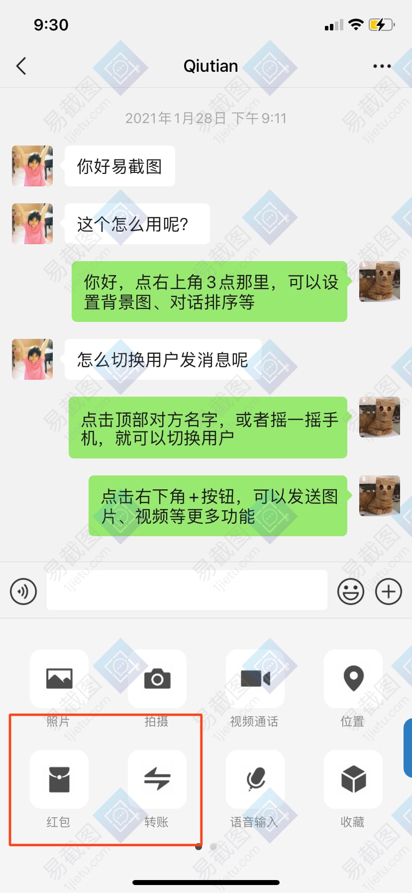马上下载易截图试试聊天中如何发转账和红包消息?功能,支持苹果ios,安卓Android