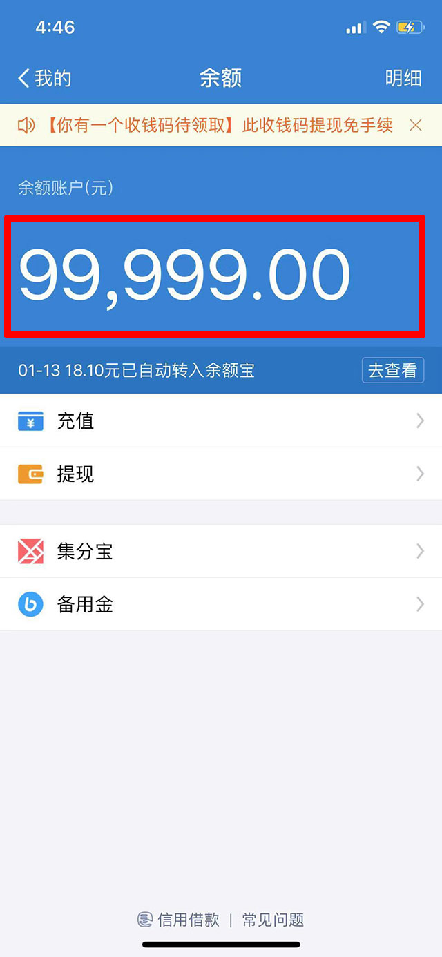 4.保存后返回支付宝余额页面即可看到修改后的效果