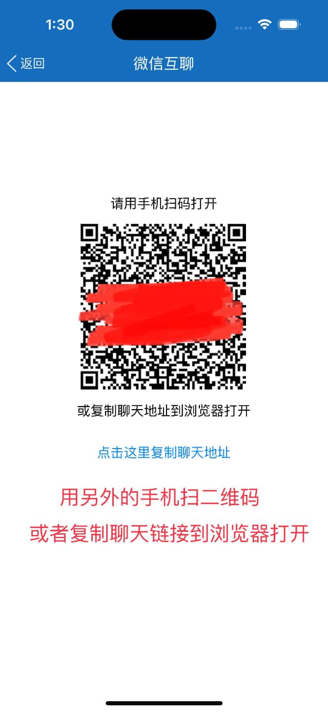 2.用另外手机扫码打开聊天页面,或复制聊天链接到浏览器打开
